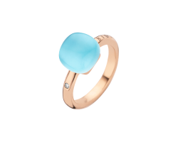 Anillo en oro rosa 18K con 0.02 ct de diamante y 12.00 ct de topacio azúl, madre perla y turquesa.