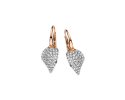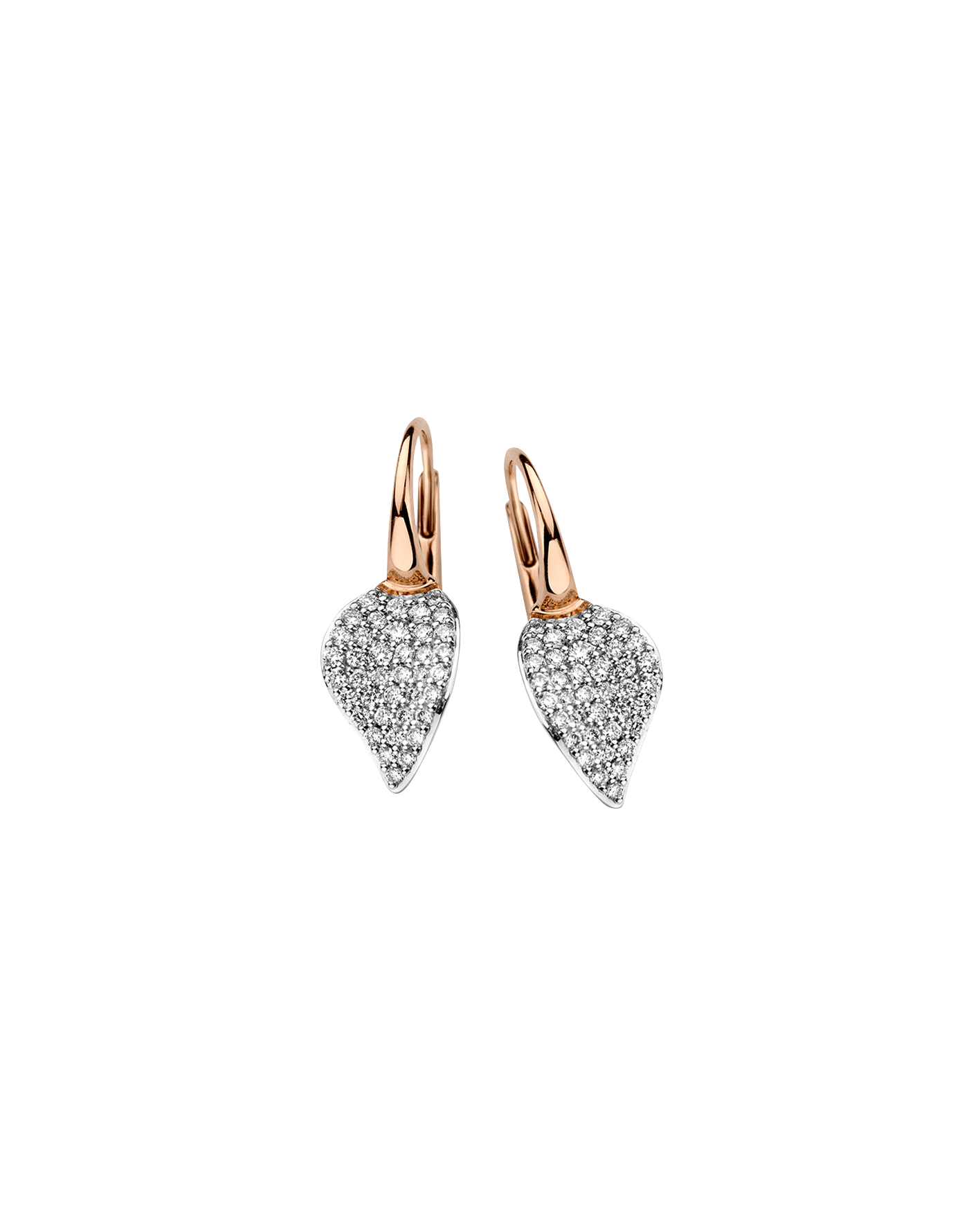 Aretes en oro rosa 18K con hojas de oro blanco 18K y diamantes.