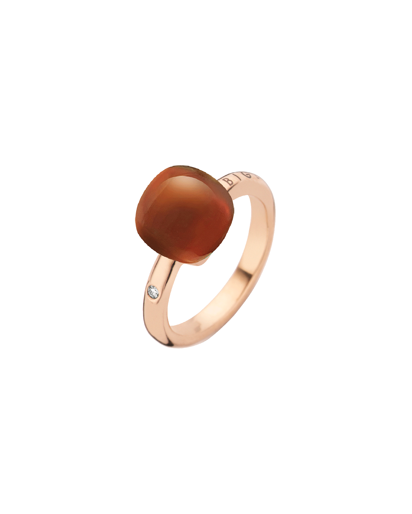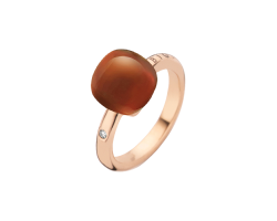 Anillo en oro rosa 18K con 0.02 ct de diamantes y 6.00 ct de cuarzo lechoso con ágata naranja y madre perla.