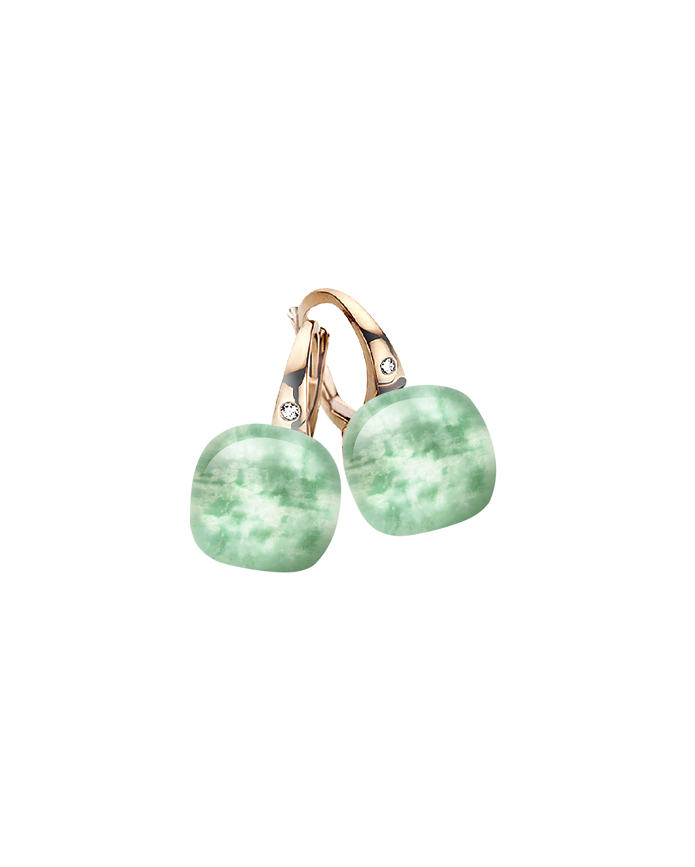 Aretes en oro rosa 18K con 0.02 ct de diamantes y 12.00 ct de cristal de piedra con amazonita.