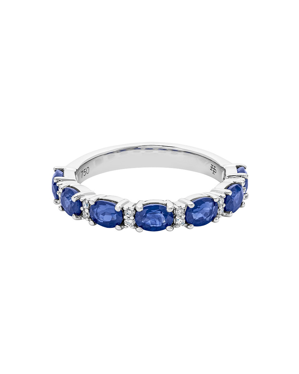 Anillo de oro blanco de 18K con 1.89 ct de zafiros y 0.06 ct de diamantes.