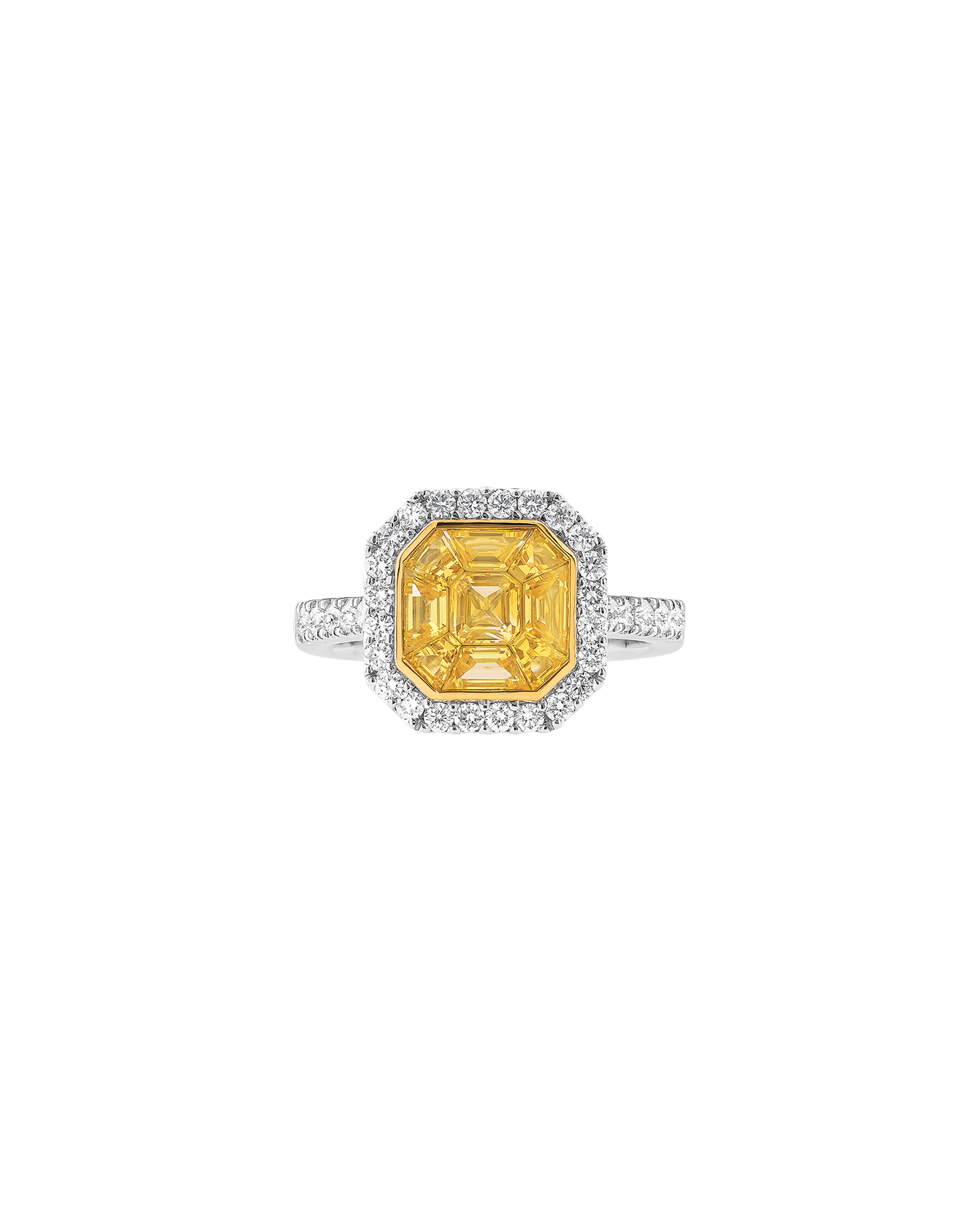 Anillo de oro blanco 18k con 1.85 ct de zafiros amarillos y 0.53 ct de diamantes