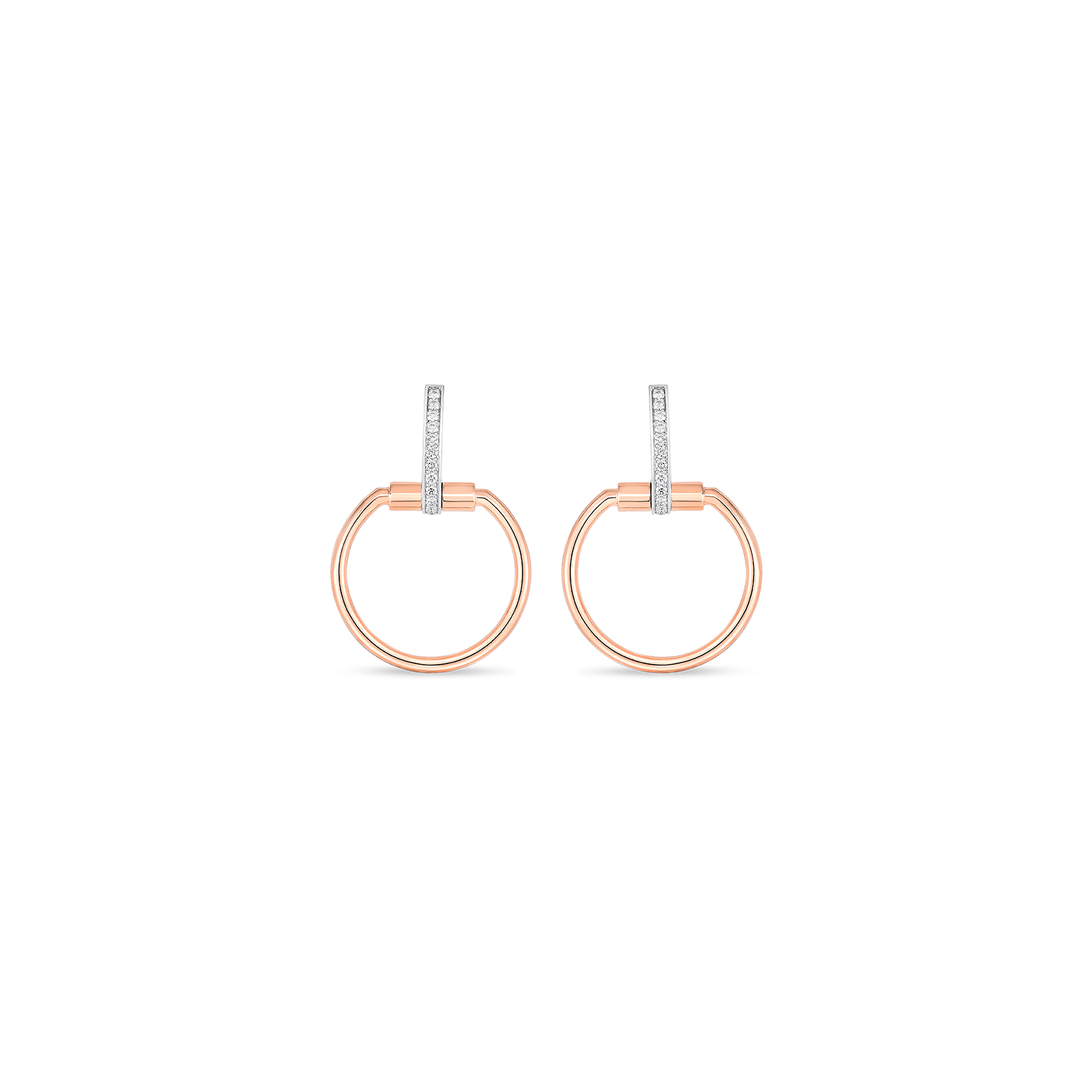 Aretes en oro rosa de 18K con diamantes montados sobre oro blanco de 18K.