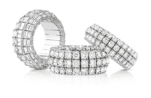 Anillos con diamantes en oro blanco de 18 kt.