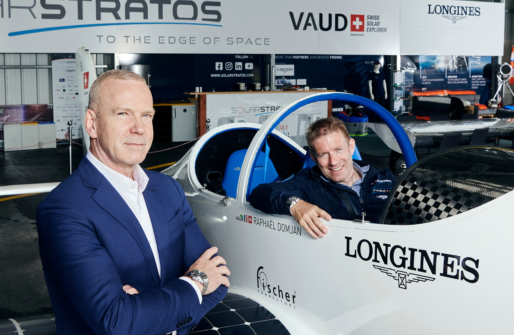 Longines y SolarStratos se enorgullecen de anunciar su colaboración, lo que convierte a Longines en el socio oficial y cronometrador de esta aventura única. Impulsada por un espíritu pionero desde sus inicios, la marca relojera suiza siempre ha producido relojes e instrumentos que han contribuido al éxito de diversas haza- ñas, gracias a su fiabilidad, precisión, robustez y tecnología original. Con el debut de alto vuelo de SolarStratos, el apoyo de Longines en esta nueva ecoexploración lo convierte en el socio ideal para conquistar la estratosfera con energía solar. Hoy, Longines se mantiene fiel a su espíritu pionero al unir fuerzas con Raphaël Domjan, fundador de la Misión SolarStratos y poseedor de varios récords mundiales gracias al poder del sol.