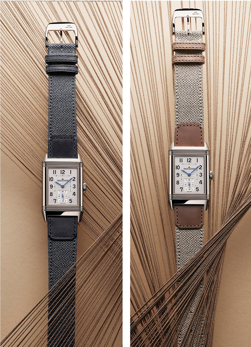 Inspiradas en las distintivas botas de lona y cuero fabricadas por Casa Fagliano para el polo de verano, las nuevas correas combinan lona con la suave piel de becerro en cuatro tonos de temporada: beige arena, tostado claro, azul pálido y gris medio. Diseñadas por Casa Fagliano ex- clusivamente para el Reverso, las correas se presentan en dos tamaños para adaptarse a todos los modelos de las colecciones Reverso Classic Medium, Reverso Classic Large y Reverso Tribute.